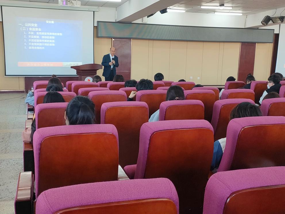 在讲座中,郭辉老师分别从消防安全、公共安全、食品安全、交通安全、网络安全以及人身安全等方面进行讲解。郭老师重点结合近年来发生的典型火灾案例,图文并茂地讲解了消防安全的重要性和火灾造成的悲惨后果,并指出很多火灾都是因为受害者存有侥幸心理、消防安全意识不强等问题引起的,比如离开寝室不拔电源,使用违规电器等。此外,郭老师对日常生活中面对隐患时的具体处理方法做了详细的说明。随后,郭老师结合学生的饮食消费特点,围绕如何辨别不合格食品等内容,引导学生自觉抵制“垃圾食品”与假冒伪劣食品,学会辨别包装食品的标签标识,养成良好的饮食习惯,保持身心健康。