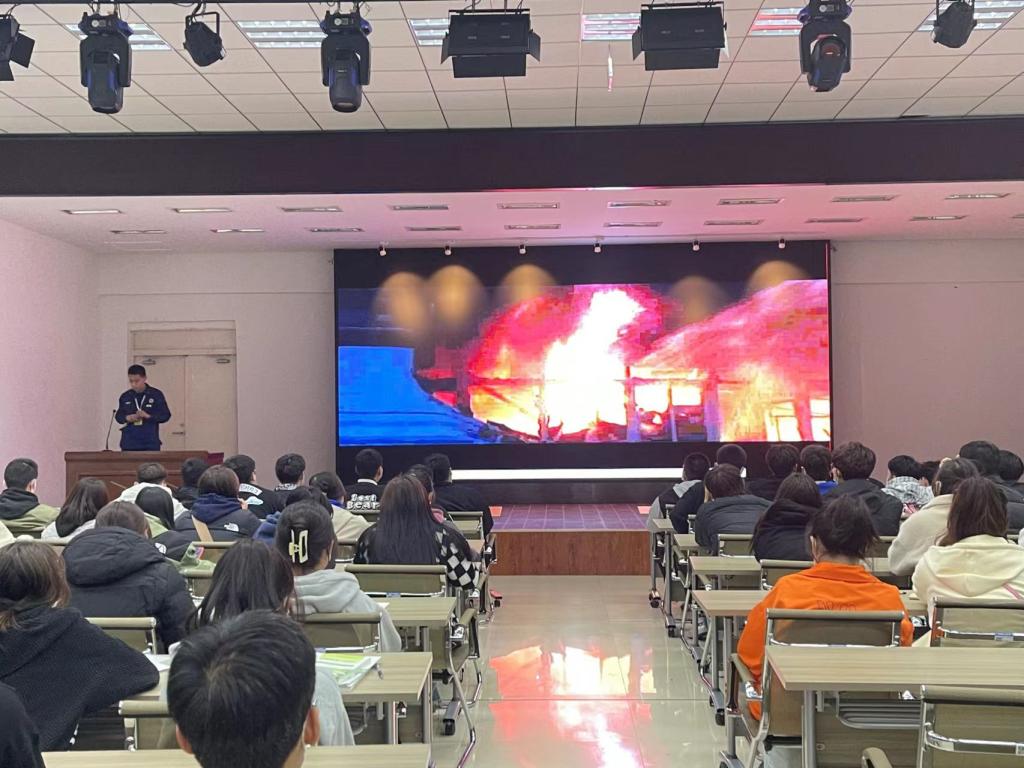 2022年10月4日,保卫处联合学生工作处组织各公寓学生干部、寝室长等300余名学生在二号教学区2508会议室开展了消防安全知识宣讲活动。