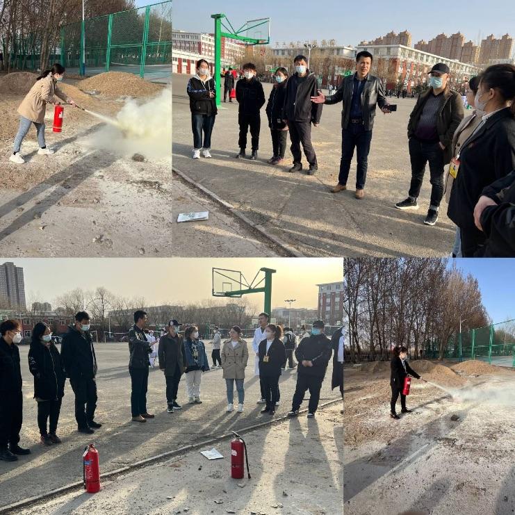 保安处倪柏亮老师详细讲解了如何正确判断和预控险情,以及在火灾发生时如何引导疏散学生和逃生自救等相关知识,并现场示范了灭火器的正确使用方法,还邀请部分教师进行了模拟演练。