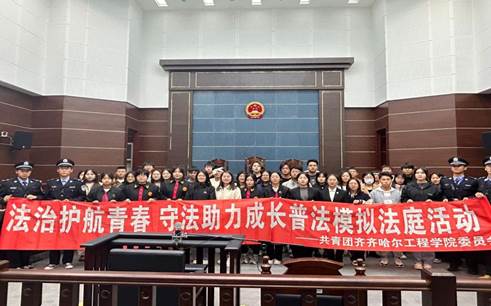 模拟法庭活动是齐齐哈尔工程学院开展大学生普法宣传教育的一个缩影,也是我校团组织在普法宣传教育的全新探索,旨在通过创新载体带领广大青年一同营造知法、守法、懂法的浓厚氛围,绘就“法治中国”的青春画卷。