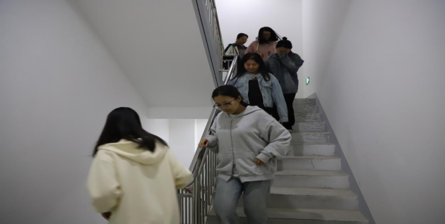 本次演练活动模拟了北区学生公寓4至7层突发火灾的紧急情况。当模拟烟雾触发了感烟探测器并随即发出警报后,微型消防站义务消防队员即刻行动,迅速对火情进行了确认,并第一时间将情况上报至中控室。与此同时,应急预案被立即启动。在工作人员的专业引导下,学生弯腰低姿,迅速有序撤离至指定的安全地带。