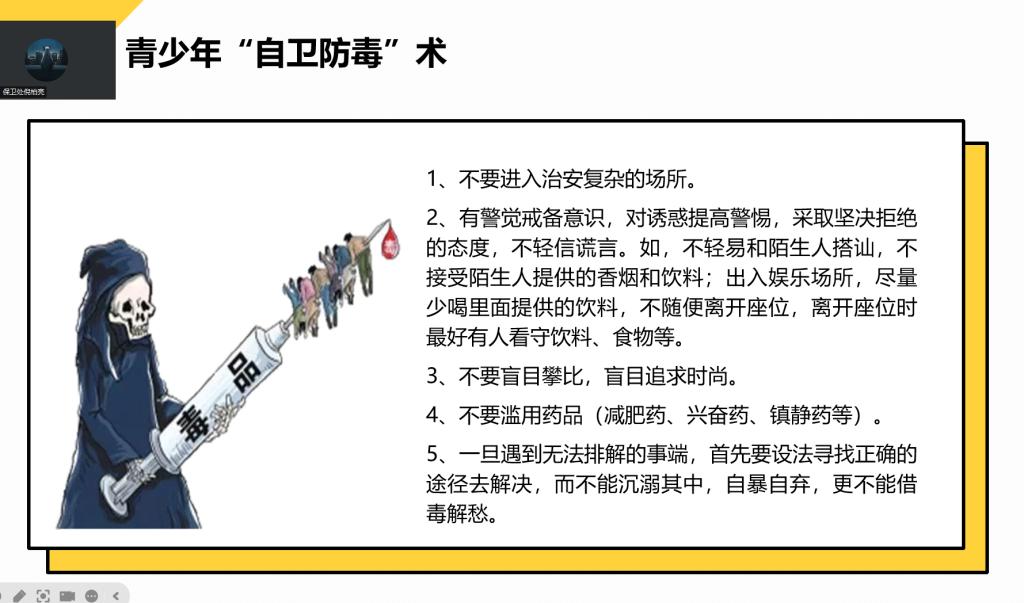 6月24日晚间,学校保卫处联合学生工作处利用“腾讯会议”在线上举办了一场主题为“全民禁毒 健康生活”的禁毒知识教育专题讲座。