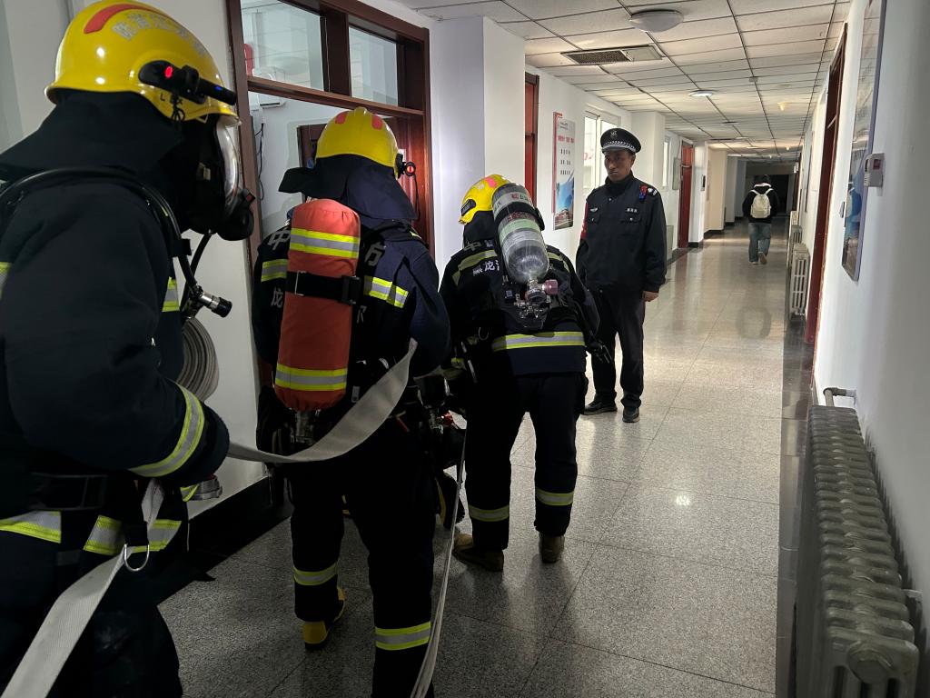 特勤大队共出动近20名消防员和3辆消防车。演练现场,消防员全副武装,动作迅速,分工明确。保卫处各岗人员积极配合,维护现场秩序。